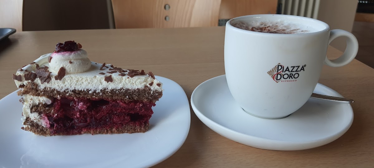 Coffee here leans on familiar comfort rather than artisanal flair, served from a WMF bean-to-cup machine that consistently delivers a reliable brew. This practical approach fits well with the relaxed, unpretentious vibe of the café. Accompanying the coffee, the selection of cakes such as cappuccino torte, Black Forest cherry torte paired with hot chocolate, and a rich marble cake clearly stand out. For those visiting after a morning walk or attending a service at the nearby cemetery, the café’s edible offerings — including fresh croissants and quark cheese tarts — add a comforting touch without feeling overly fussy.